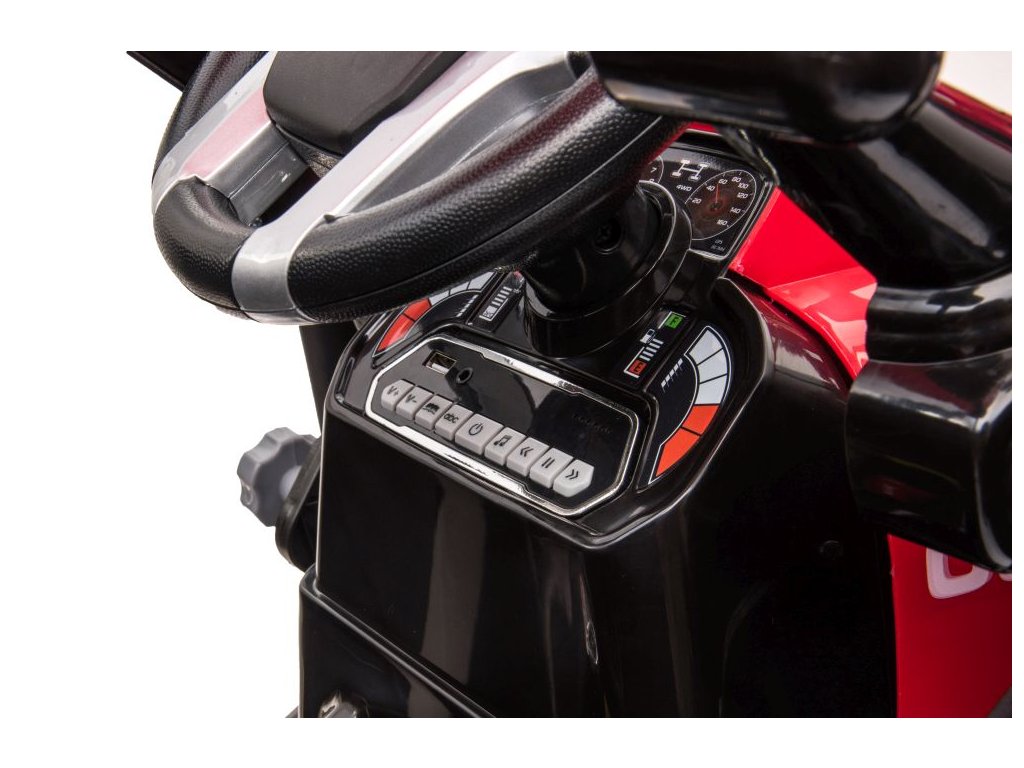 Otroški električni traktor Hercules s prikolico ima dva motorja s skupno močjo 90W in baterijo s kapaciteto 24V 7Ah. Traktor ima sprednje LED luči in glasbeni panel z Bluetooth, Radiem ter vhodi za MP3 in USB. Največja nosilnost traktorja je 30 kg.