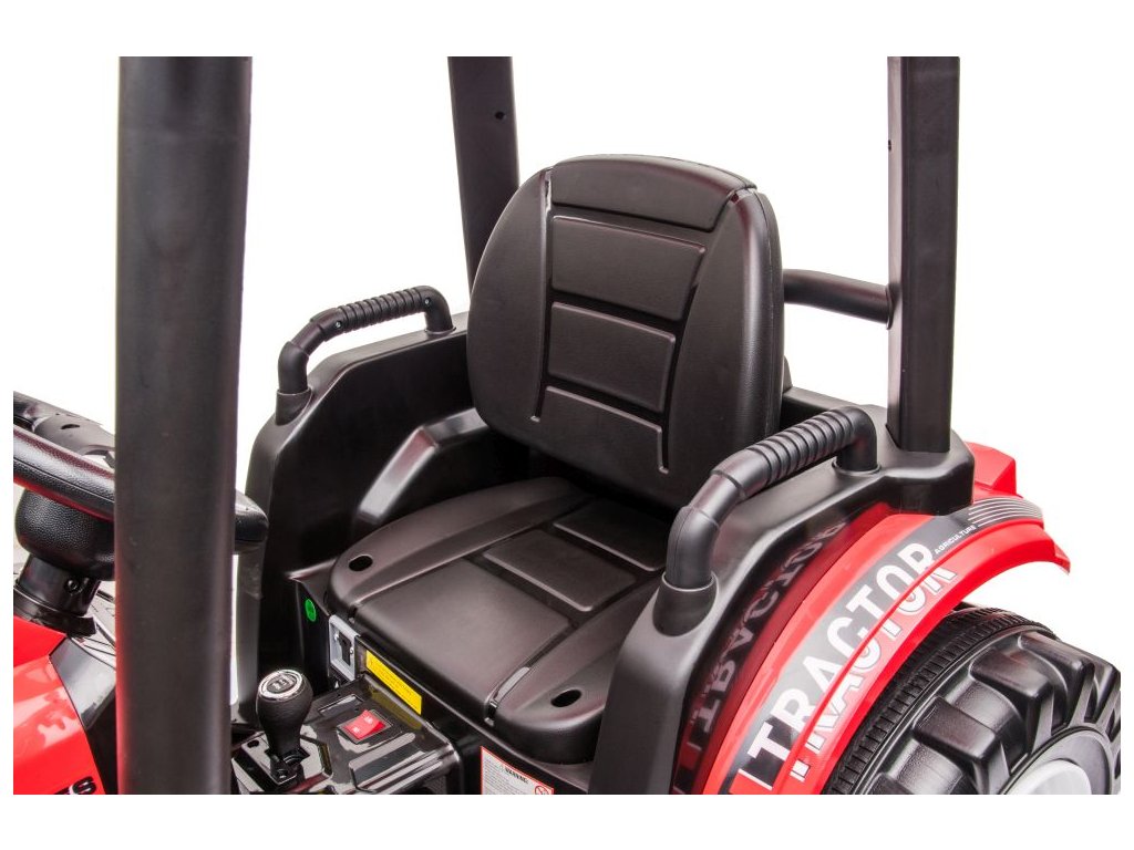 Traktor ima plastična kolesa in sedež. Traktor se samodejno ustavi po sprostitvi plinskega pedala in doseže hitrost do 6 km/h.