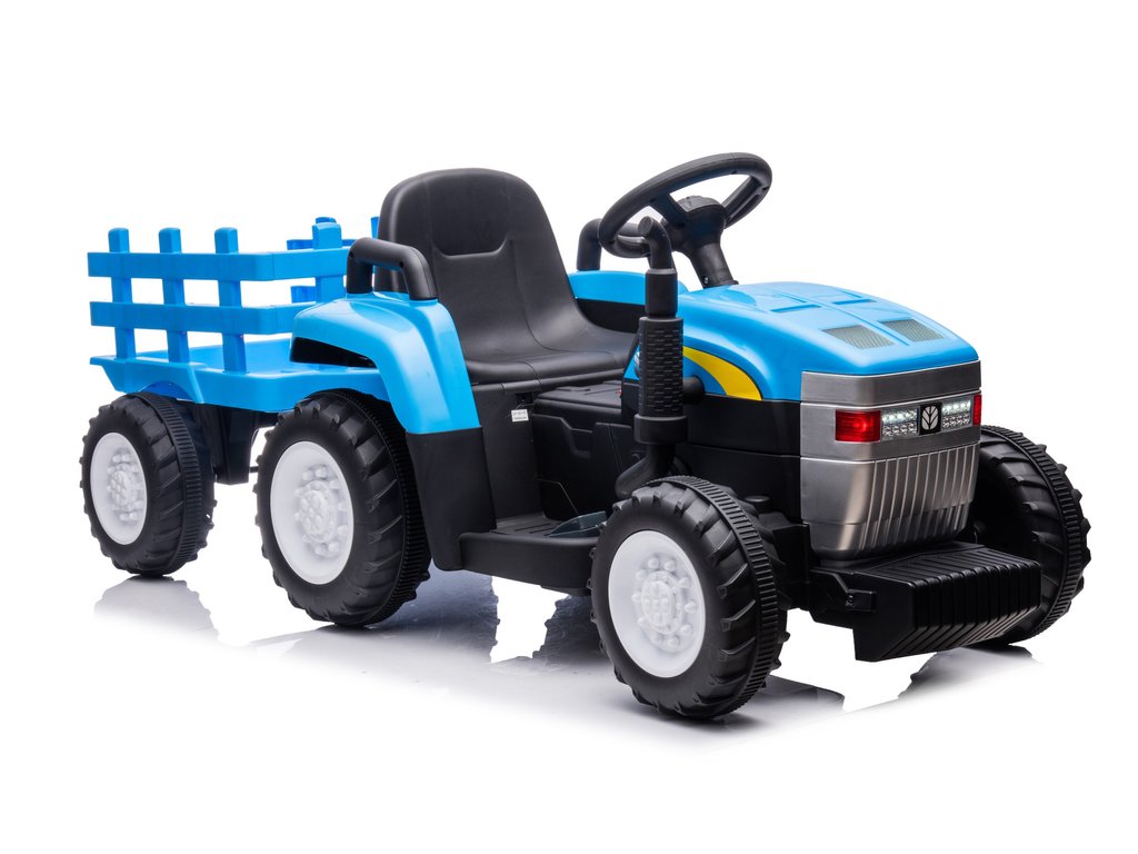 Otroški električni traktor s prikolico New Holland ima dva motorja z močjo 45W in baterijo s kapaciteto 12V 4,5Ah. Traktor ima sprednje in zadnje LED luči ter glasbeni panel z vhodom za MP3, USB in SD kartico. Največja nosilnost traktorja je 35 kg.