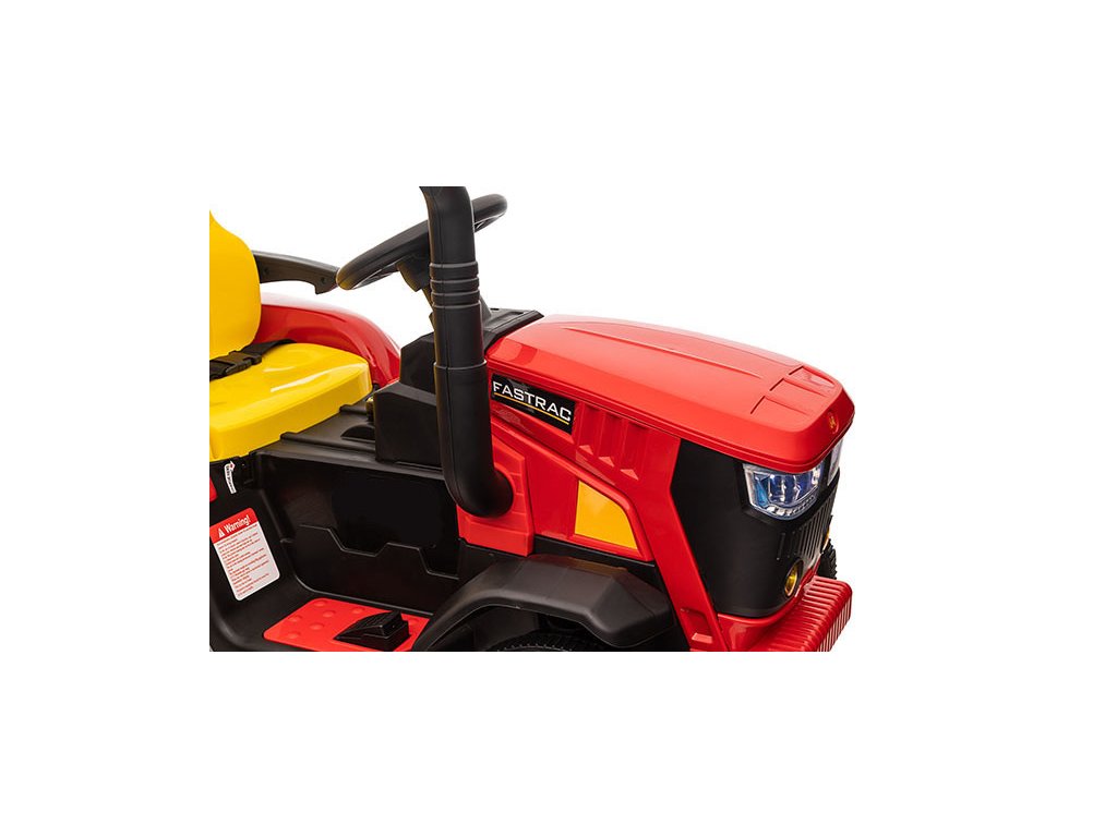 Udoben sedež z varnostnimi pasovi zagotavlja varnost otroka med vožnjo. Glasbena plošča z USB in AUX vhodom ter režo za pomnilniško kartico ponuja zabavo in interaktivnost. Sprednje luči prispevajo k bolj realističnemu videzu traktorja.