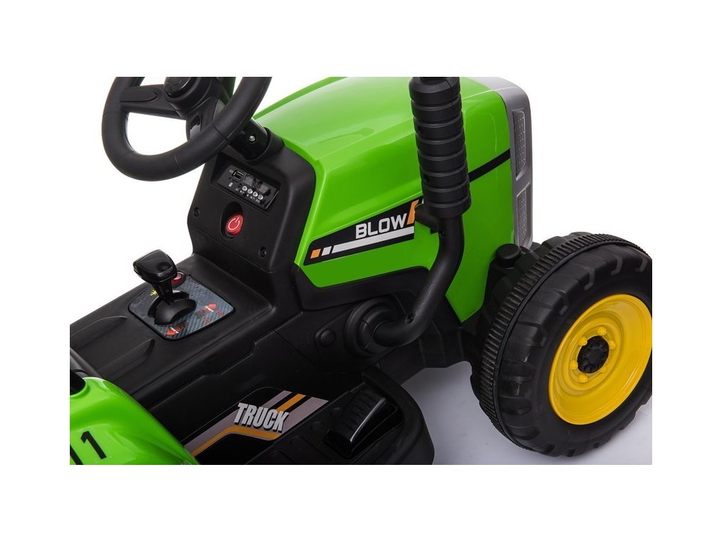 Otroški električni traktor z dvema električnima motorjema, ki zagotavljata pogon obeh zadnjih koles, je primeren tudi za vožnjo po terenu. S vožnjo se bodo spopadli tudi najmlajši. Traktor je velik, močan in izdelan iz najkvalitetnejše plastike v modernem slogu, kar bo zadovoljilo okuse najmlajših navdušencev motornih vozil. Igrača je priporočena s strani proizvajalca od 3 let in ima CE certifikat.