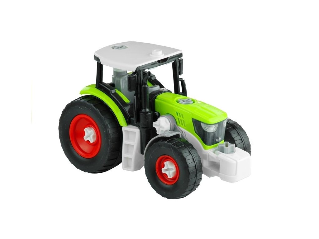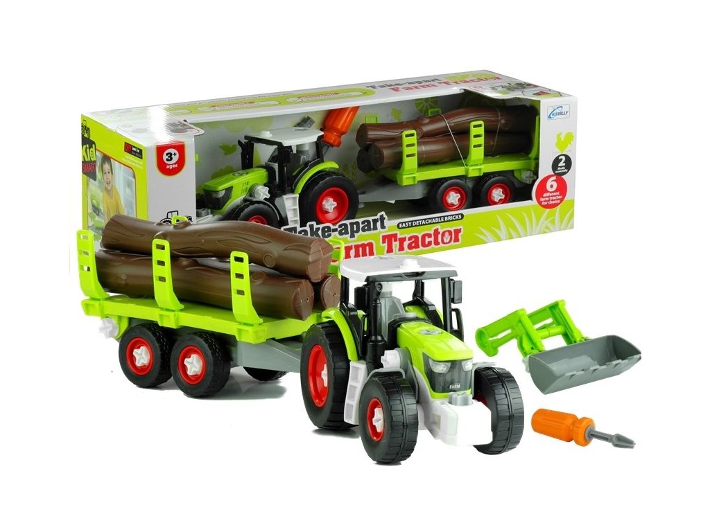 Set za ljubitelje DIY vsebuje izvijač, vijake, traktor, prikolico, les in roko. Celota je izdelana iz plastike, kar zagotavlja dolgo življenjsko dobo igrače. Traktor in prikolica sta nameščena na plastičnih, protektiranih kolesih, ki se vrtijo. Od tega trenutka dalje lahko malček prilagodi vozilo po svojih lastnih zamislih.
