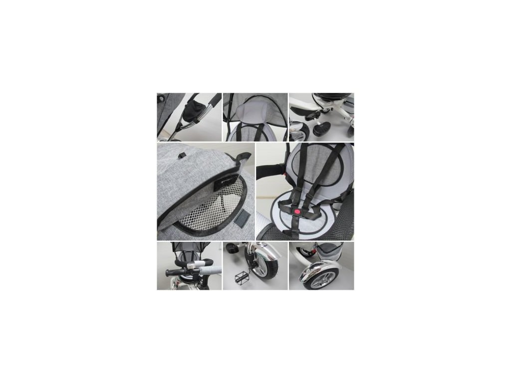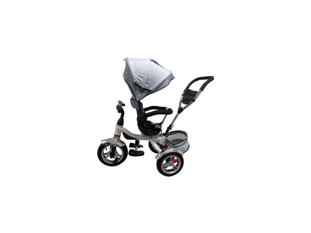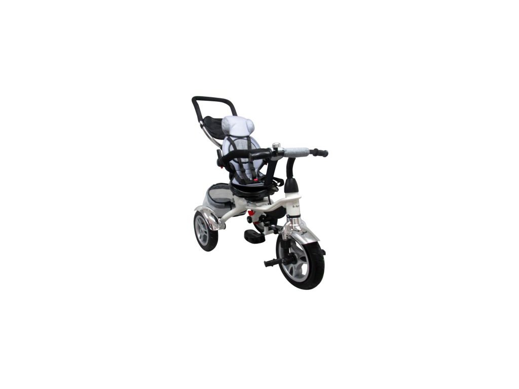 Otroški tricikel T3 R-Sport siva prihaja z napihljivimi kolesi, ki so tiha in prilagodljiva različnim vrstam terena. Vaš otrok se bo usedel v udobno oblikovan sedež, medtem ko bo za varnost poskrbel varnostni pas.
