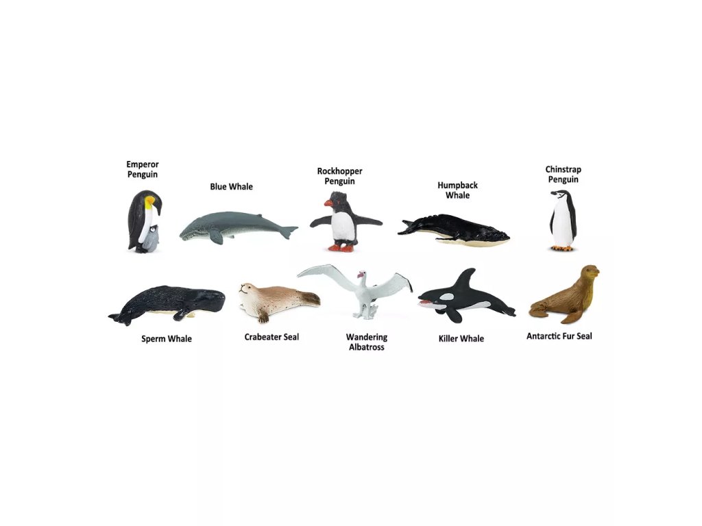 Tuba vsebuje deset skrbno obdelanih figuric, ki predstavljajo pomembne vrste antarktičnih živali. Figure so podrobno zasnovane in ročno poslikane. Embalaža se lahko ponovno uporabi kot škatla za shranjevanje za enostavno shranjevanje replik.