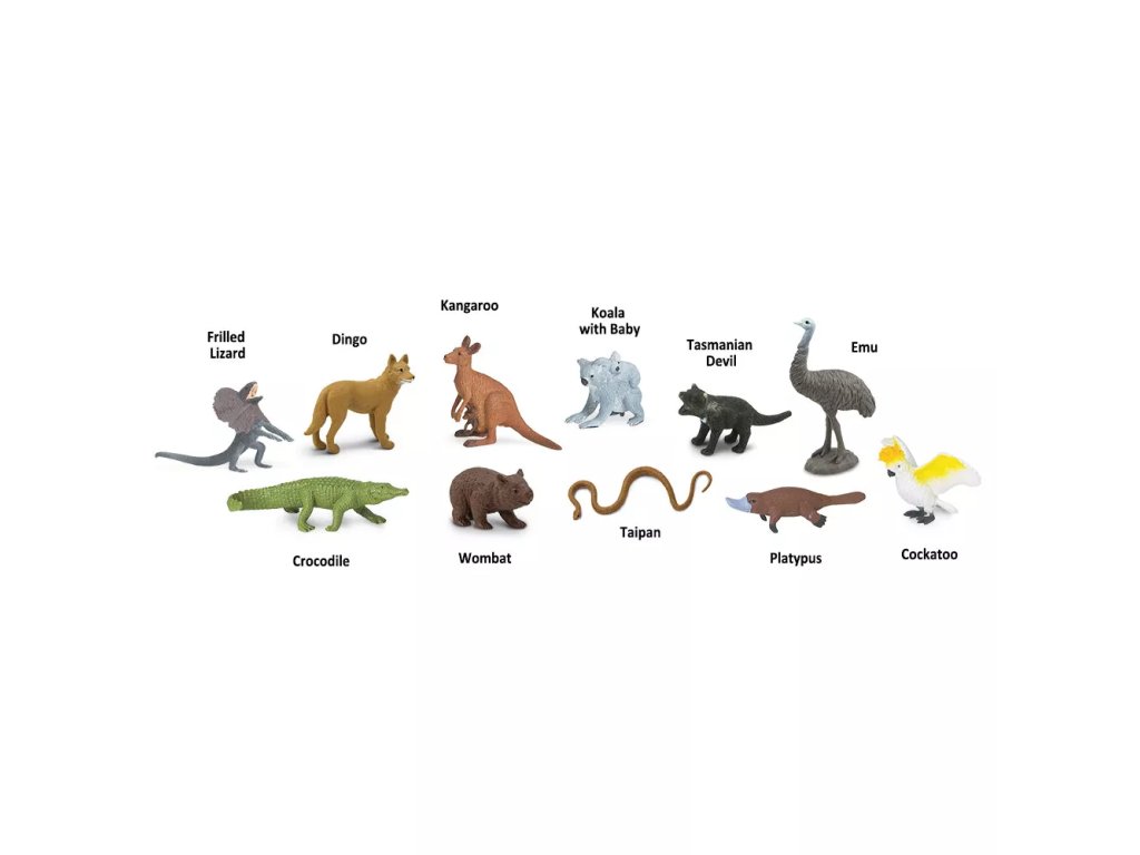 Komplet enajstih ročno poslikanih figuric predstavlja tipične avstralske živali. Figurice so podrobno izdelane in otrokom pomagajo spoznavati značilnosti posameznih vrst ter razvijati besedni zaklad.