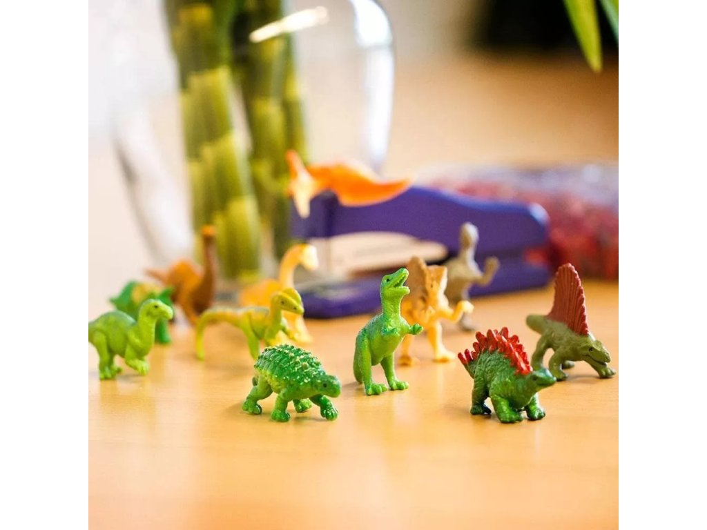 Kolekcija Safari Ltd. TOOBS predstavlja komplet ročno poslikanih miniaturnih replik živali, zasnovanih s poudarkom na zvestobi in podrobnostih. Tuba z dinozavri vsebuje 12 prazgodovinskih figuric, primernih za prepoznavanje oblik in značilnosti vrst; imena živali so pogosto navedena v angleščini na trebuhu figuric.