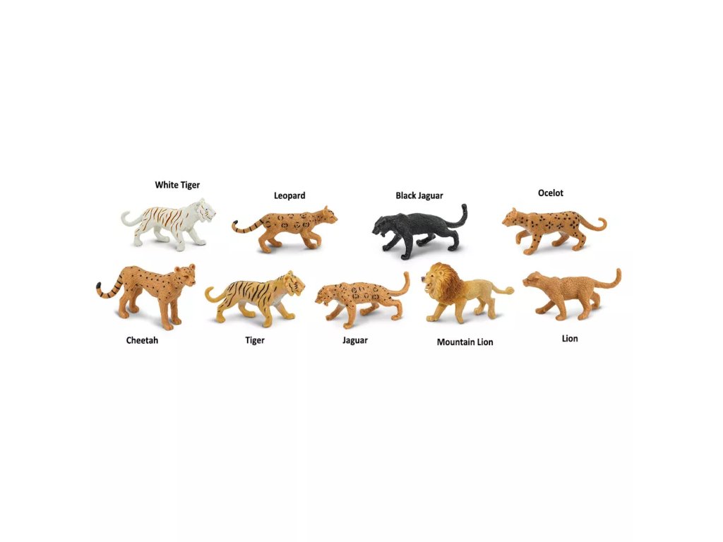 Komplet ročno poslikanih figuric velikih mačk, izdelanih do potankosti, da otroku pomagajo prepoznati tipične značilnosti posameznih vrst.