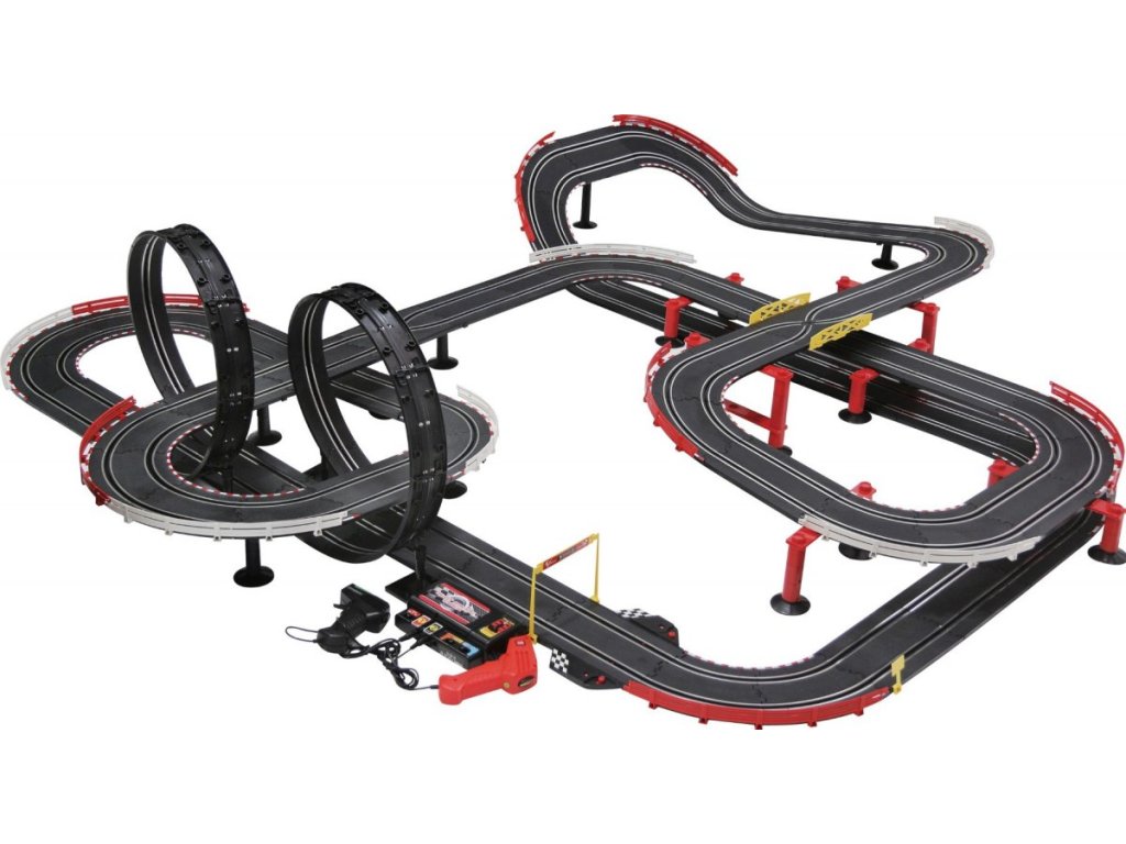 Velika avtomobilska steza je sestavljena iz ostrih startov in 360-stopinjskih zank. V kompletu sta dva avtomobilčka, dva krmilnika in števec krogov. Samodejno sledenje ima dva načina hitrosti, počasno in hitro.