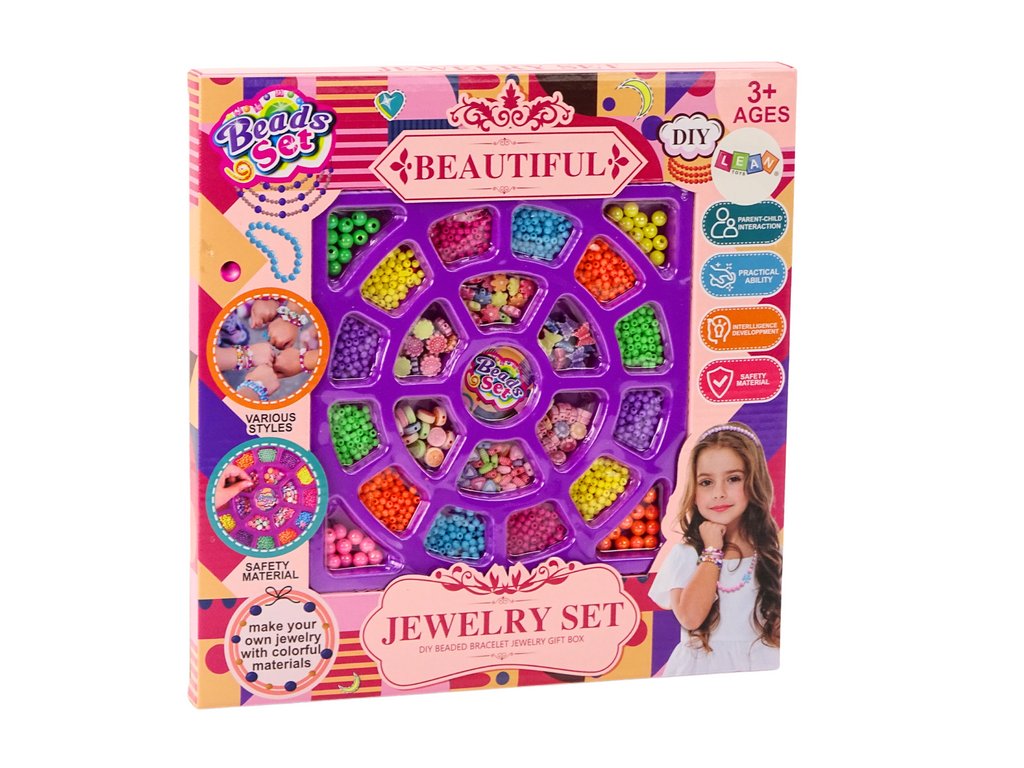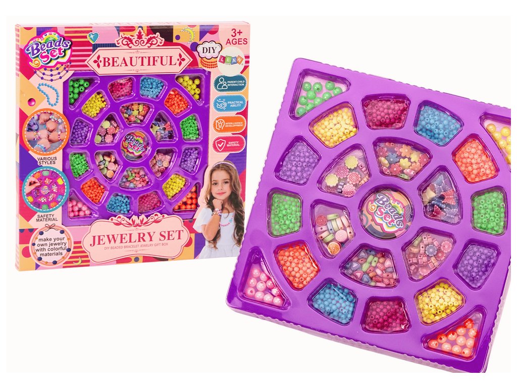 Set kroglic za otroke je ustvarjalna igrača, ki omogoča izdelavo čudovitega in edinstvenega nakita. V setu boste našli kroglice različnih vzorcev in barv, kar omogoča ustvarjanje izvirnih projektov. Barvne kroglice imajo živahne barve, ki pritegnejo pozornost in vabijo k ustvarjanju. Biserne kroglice z elegantno biserno obdelavo dodajo vsakemu projektu sijaj. Kroglice v obliki cvetlic, prisrčne kroglice v obliki cvetk, metuljčkov ali srčkov dodajajo zapestnicam in ogrlicam nežnost in čar.
