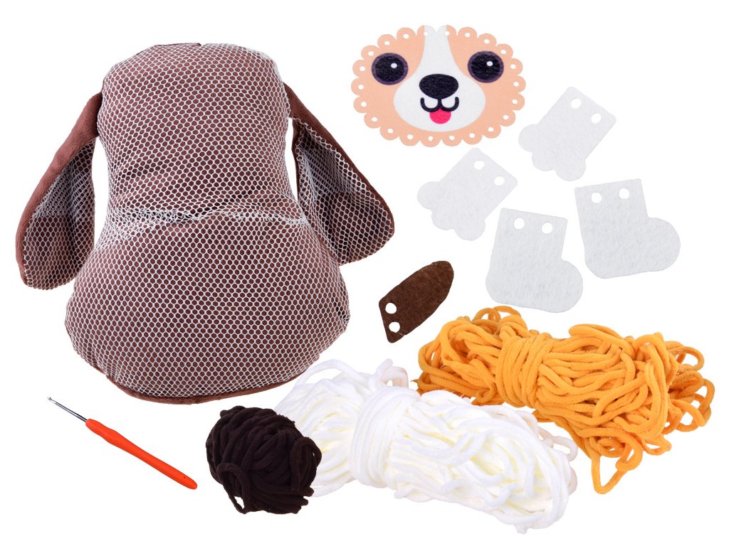 Cuddly vzglavnik v obliki kužka je odlična izbira za ljubitelje različnih ročnih aktivnosti. Udoben vzglavnik ne zahteva uporabe igle in niti za okraševanje, zato je varen za naše otroke. Za okrasitev vzglavnika uporabite priloženo kvačko, da prepletete prejo skozi mrežasti žep in zapolnite vrstice, s čimer ustvarite dlako vašega ljubljenčka. Gobček, tačke, rep in copatke kužka pritrdite s prepletanjem preje skozi mrežo in odprtine, ki so izrezane v filcu. Takšno delo je prijetno in zabavno. Okrašen vzglavnik bo čudovita dekoracija vsake otroške sobe in kar je najpomembnejše, bo izdelan ročno in s tem edinstven.