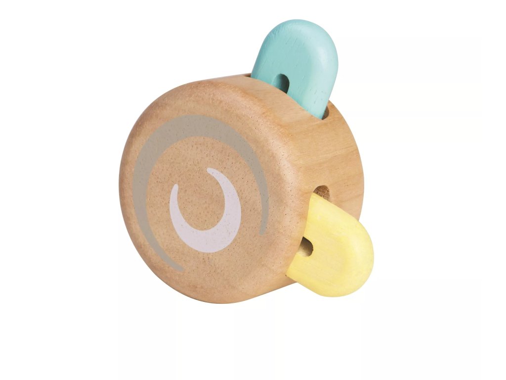 Valjček iz delavnice Plan Toys je primerna igrača za majhne otroške ročice. Opazujte pastelno obarvane dele, ki se pojavijo med premikanjem valjčka in spodbujajo otroško radovednost.
