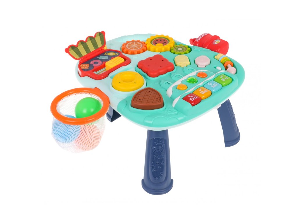 Interaktivni večnamenski set 5v1 z zvočnimi in svetlobnimi učinki je igrača za otroke od 12 mesecev. Izdelana je iz plastike, varne za otroke, pestrosti barv privlačijo otroške oči in ga spodbujajo k igri. Igrača deluje na 3 x AA 1,5V baterije, baterije niso vključene v pakiranje.