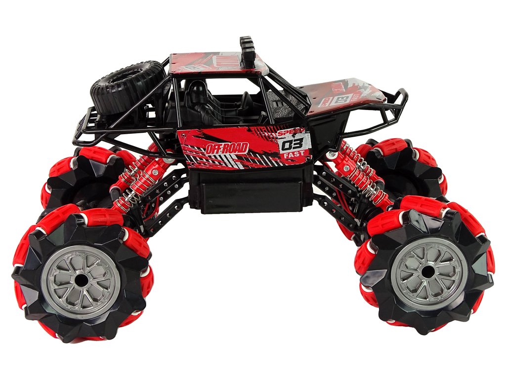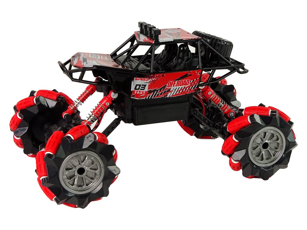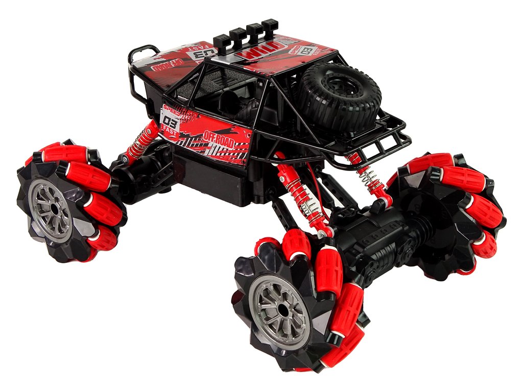 Rdeči avtomobilček na daljinsko vodenje je odlična izbira za ljubitelje motornih vozil. Avto brez težav premaguje ovire zahvaljujoč uporabljenim amortizerjem in velikim kolesom s premerom 8 cm. Realističen videz avtomobila bo navdušil vsakega otroka. Vožnja avtomobilčka na daljinsko vodenje razvija koncentracijo, trenira prstke in krepi zbranost.