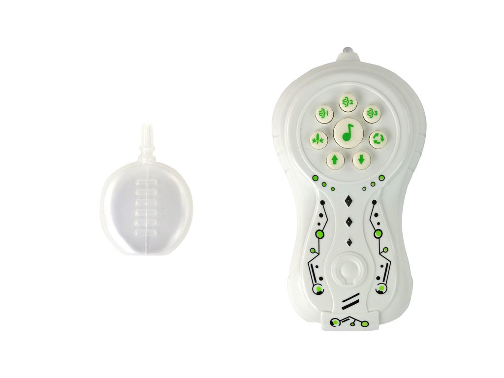 - Upravljalnik deluje na 2 x 1,5 V AAA baterije, ki niso vključene v paket.