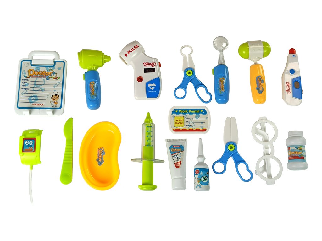 Obsežen in dobro opremljen zdravniški komplet. Idealno za male ljubitelje zdravniških iger. Če vaš otrok zdravi vse svoje igrače in trdi, da želi postati zdravnik, mu ponudite ta zdravstveni voziček s pripomočki. Njegova bogata in raznovrstna oprema ter estetsko izdelani zdravniški instrumenti bodo podprli otroško domišljijo in mu omogočili povezati čudovito zabavo z učenjem in razvojem lastnih strasti. Skrbno narejene posnetke pravih zdravniških orodij bodo razveselile vsakega otroka.