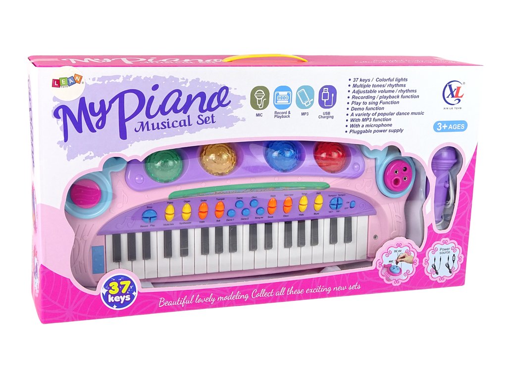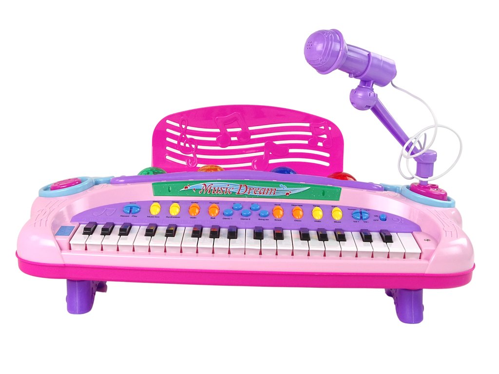 Otroški električni keyboard je odlična alternativa za vse male glasbene navdušence in tudi začetnike. Opremljen je z 22 tipkami in 29 dodatnimi funkcijskimi gumbi, ki aktivirajo različne posebne učinke. Poleg tega komplet vsebuje mikrofon, ki vam omogoča, da hkrati igrate, pojete in snemate melodije.