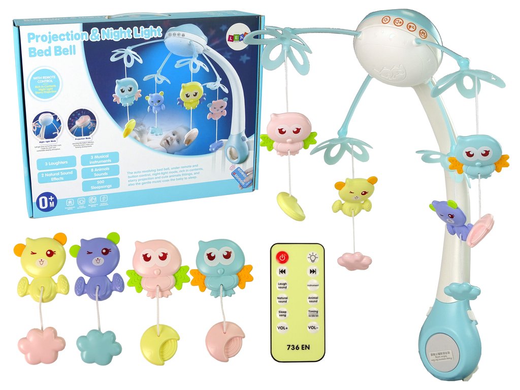 Vrtiljak nad posteljico s projektorjem modri
