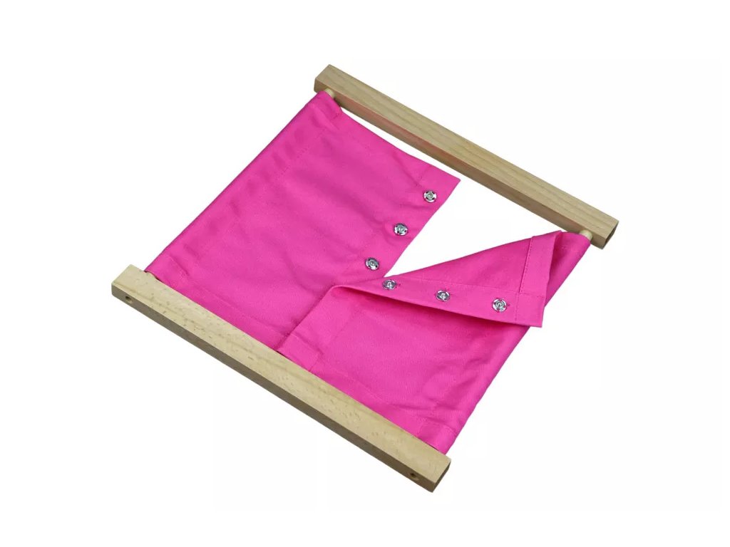 Okvir za zapenjanje s pritiskači je del Montessori pripomočkov na področju praktičnega življenja, ki je usmerjen na skrb zase. Aktivnost simulira običajno dejavnost oblačenja in otroci pri njej osvajajo tehniko zapenjanja in odpenjanja pritiskačev.