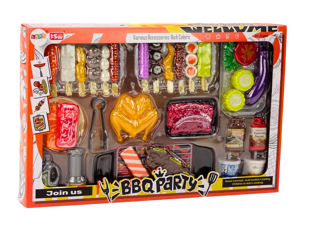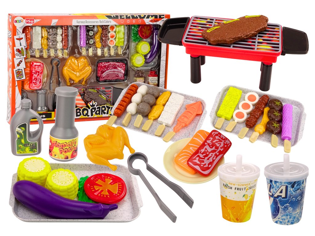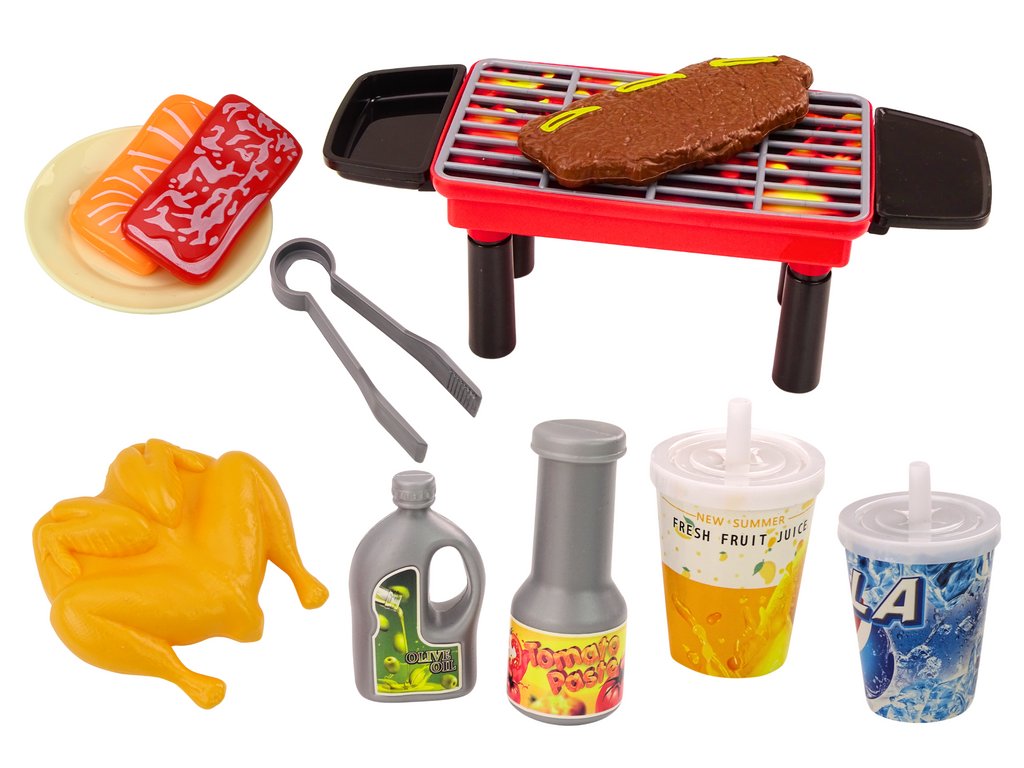 Komplet vključuje široko paleto figuric hrane za žar, vključno s špili, klobasami, steakom, kozicami, ribami in zelenjavo. Vsak kos je izdelan s skrbnimi detajli, kar jim daje realističen videz in spodbuja k ustvarjanju raznovrstnih jedi. Poleg glavnih jedi komplet prav tako vključuje različne dodatke, kot so omake, gorčica, kečap ali solata, ki dopolnjujejo okus in aromo žar jedi. Igra na žaru ne le da nudi zabavo, ampak ima tudi izobraževalno vrednost. Otroci se lahko učijo o različnih vrstah hrane, zdravem prehranjevanju in razvijajo socialne veščine z igro organiziranja žar zabave.