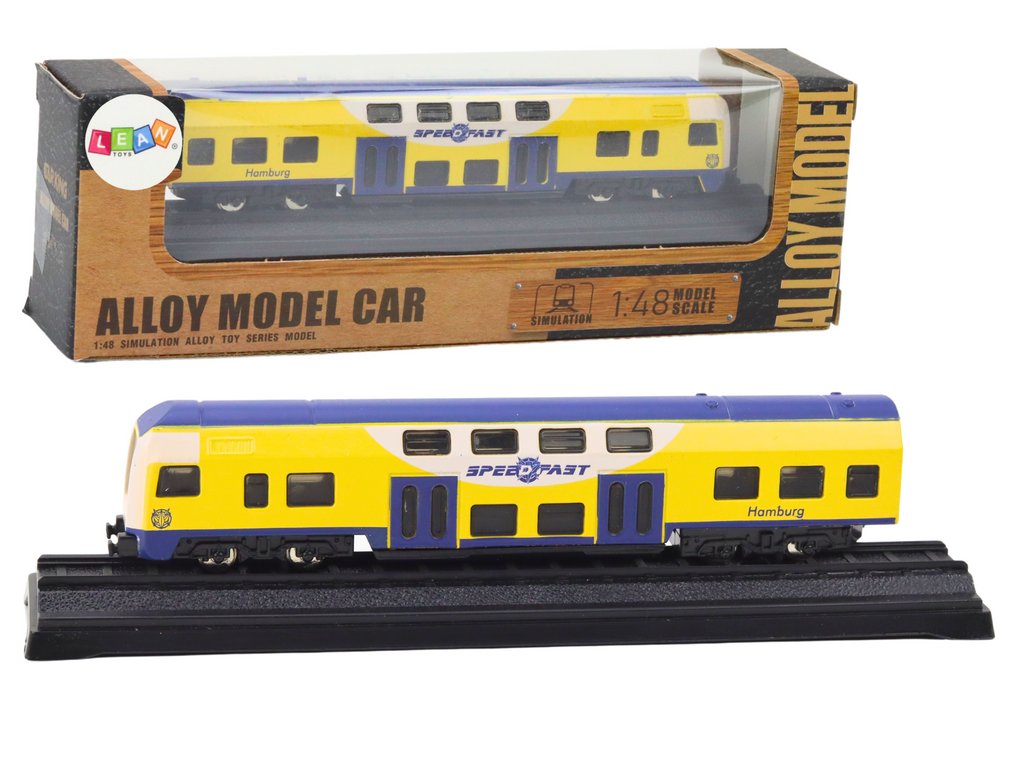 Model vlaka v klasični rumeno-modri barvi pritegne oko in doda eleganco vsaki zbirki. Izdelan iz trpežnega kovina, zagotavlja dolgo življenjsko dobo in realističen videz. Natančno ohranjene proporcije v merilu 1:48 naredijo model pravo pomanjšano verzijo vlaka. Skrbno obdelani elementi, kot so okna, vrata in drugi detajli, naredijo ta model izjemnega. Je nepogrešljiv dodatek vsaki zbirki modelov vlakov, ki bo zagotovo postal njen osrednji del.