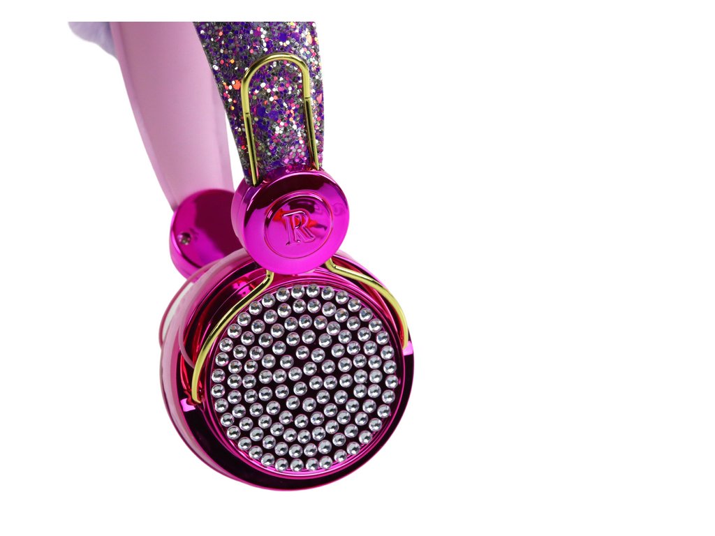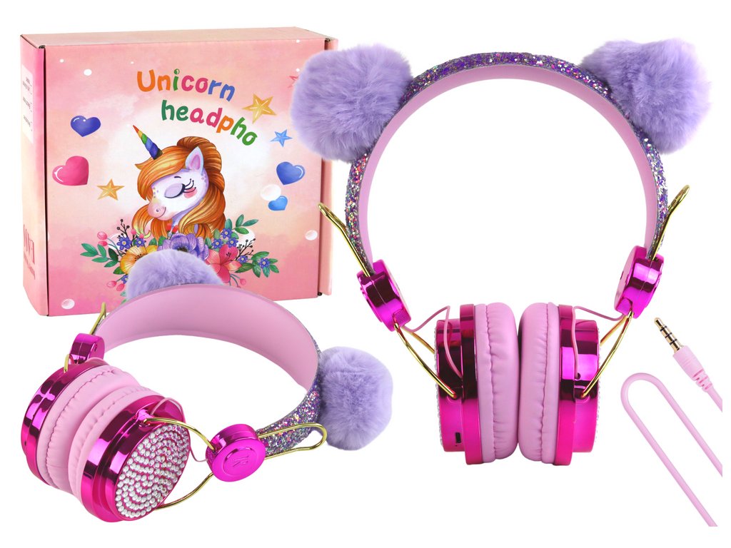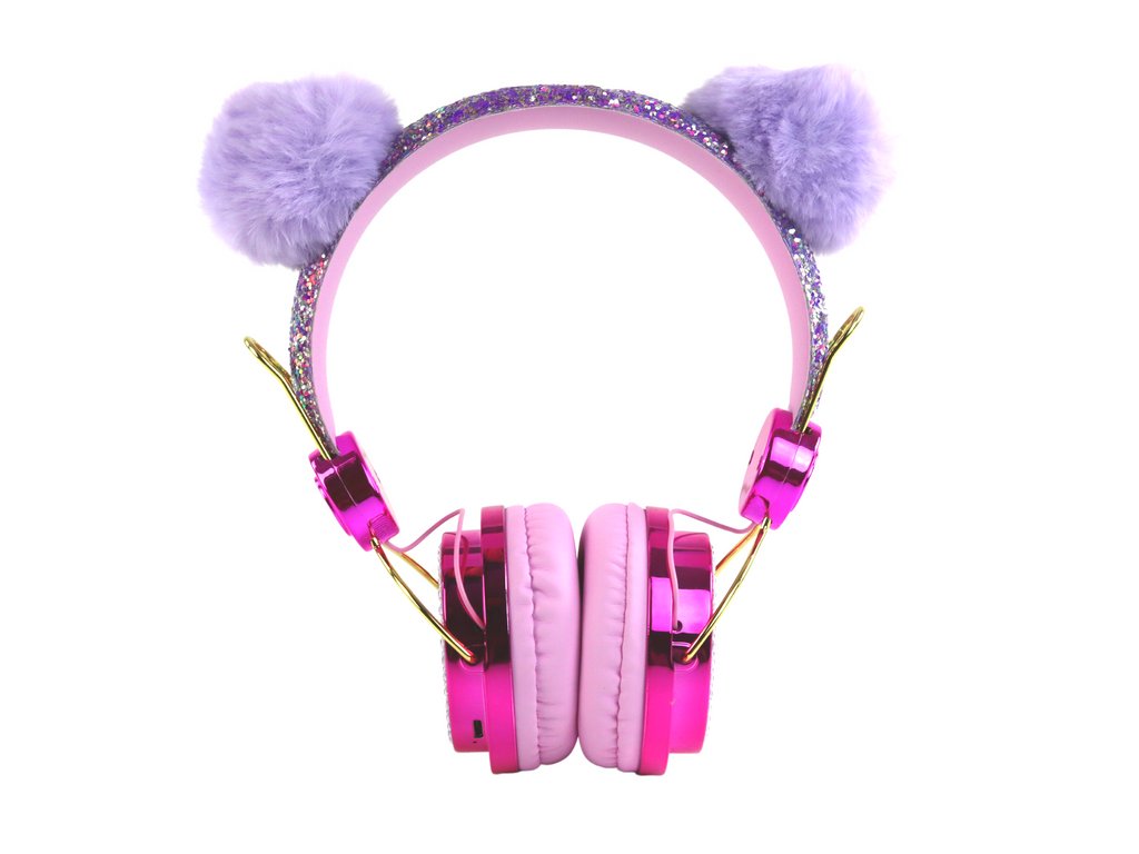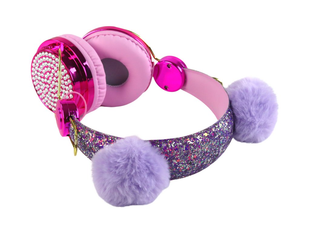 Slušalke v nežnih odtenkih, okrašene z bleščicami, bleščečim trakom in mehkimi vijoličnimi naušniki, naredijo te slušalke ne le praktičen pripomoček, temveč tudi stilski dodatek oblačila. Mehki naušniki in lahka konstrukcija zagotavljajo udobno nošenje dalj časa brez neprijetnega pritiska.