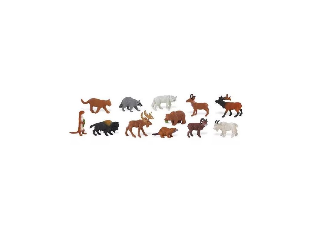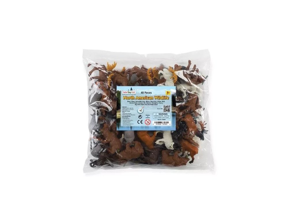 Spoznajte sesalce, ki se potepajo po severnoameriških gozdovih in gorah. Vreča vsebuje 48 mini, ročno poslikanih replik teh vrst.