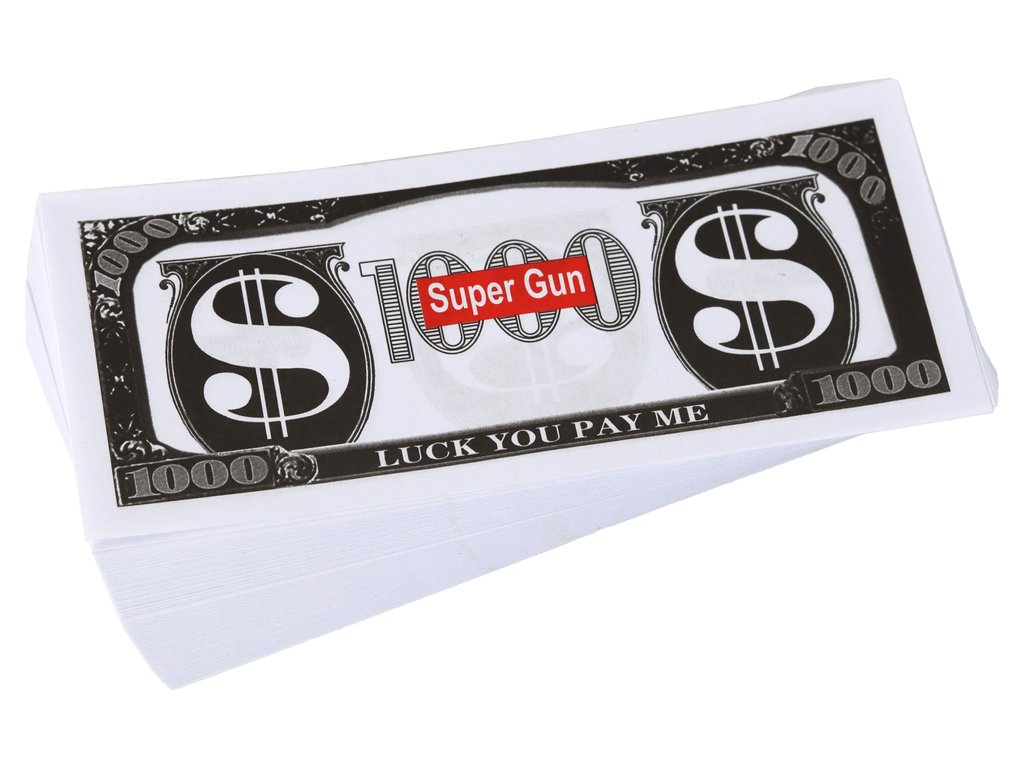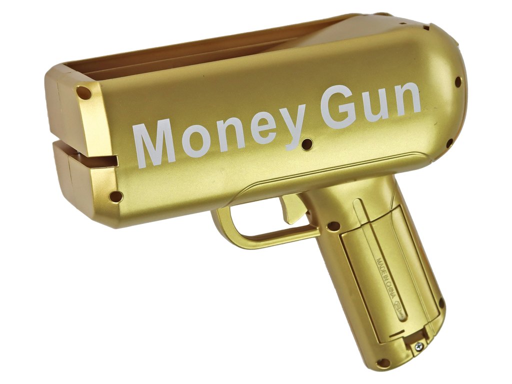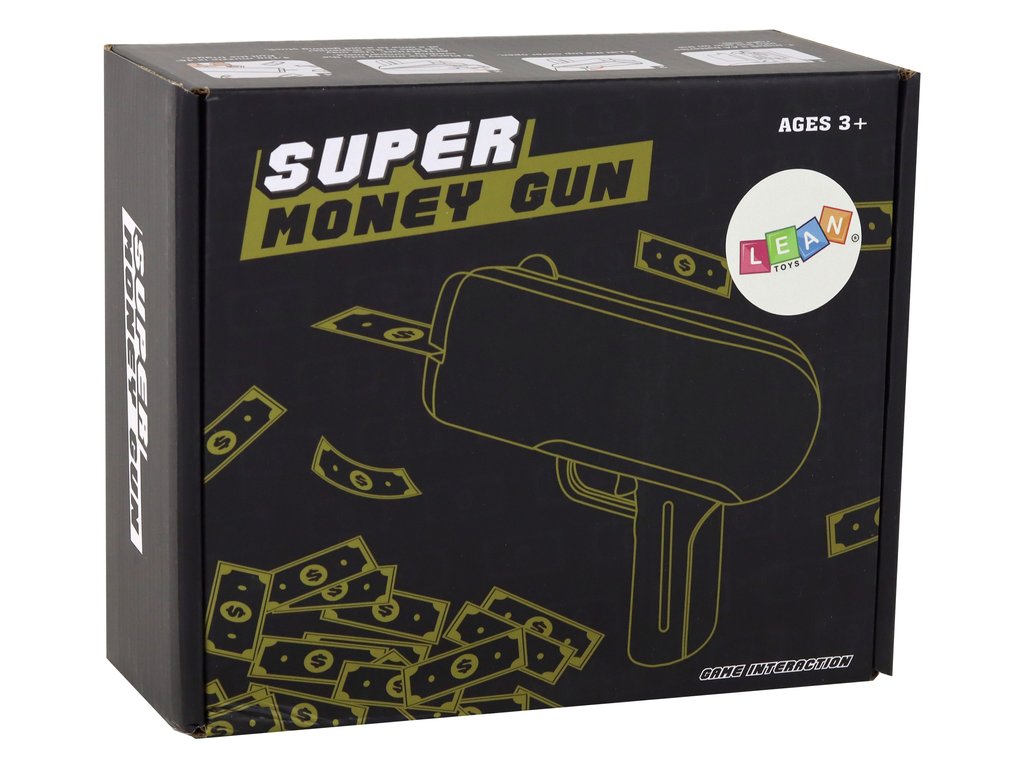 Vstavite 2 bateriji 1.5V AA v pištolo. Odprite zgornji pokrov in bankovce namestite v polnilno komoro, na koncu sprožite sprožilec. Poskrbite, da usmerjate na mesto, kamor želite bankovce izstreliti! (Baterije niso vključene v paket.)